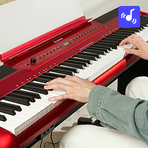 - Doppi altoparlanti stereo da 15 W integrati che forniscono un senso di suono surround e ti offrono una qualità del suono perfetta qualunque cosa tu pratichi il pianoforte, registri, arrangia o esegui.